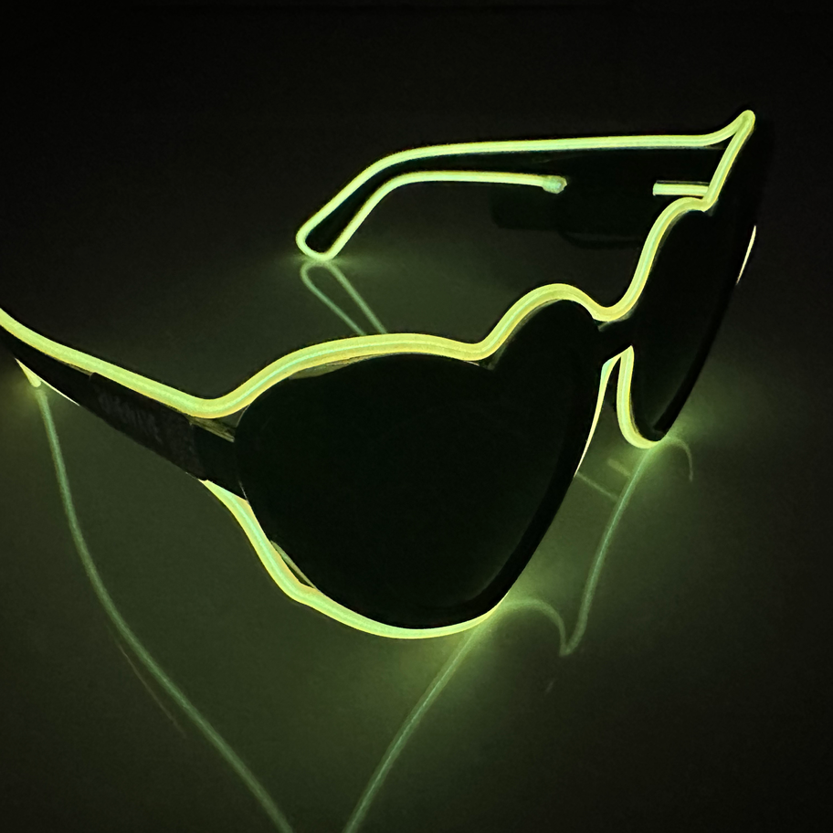 Shine bright with LED Heart Glasses, the ultimate light-up eyewear for ravers, festival-goers, and party lovers! Designed for nightlife, EDM events, and glow parties, these neon Heart shaped LED glasses make you stand out in any crowd.